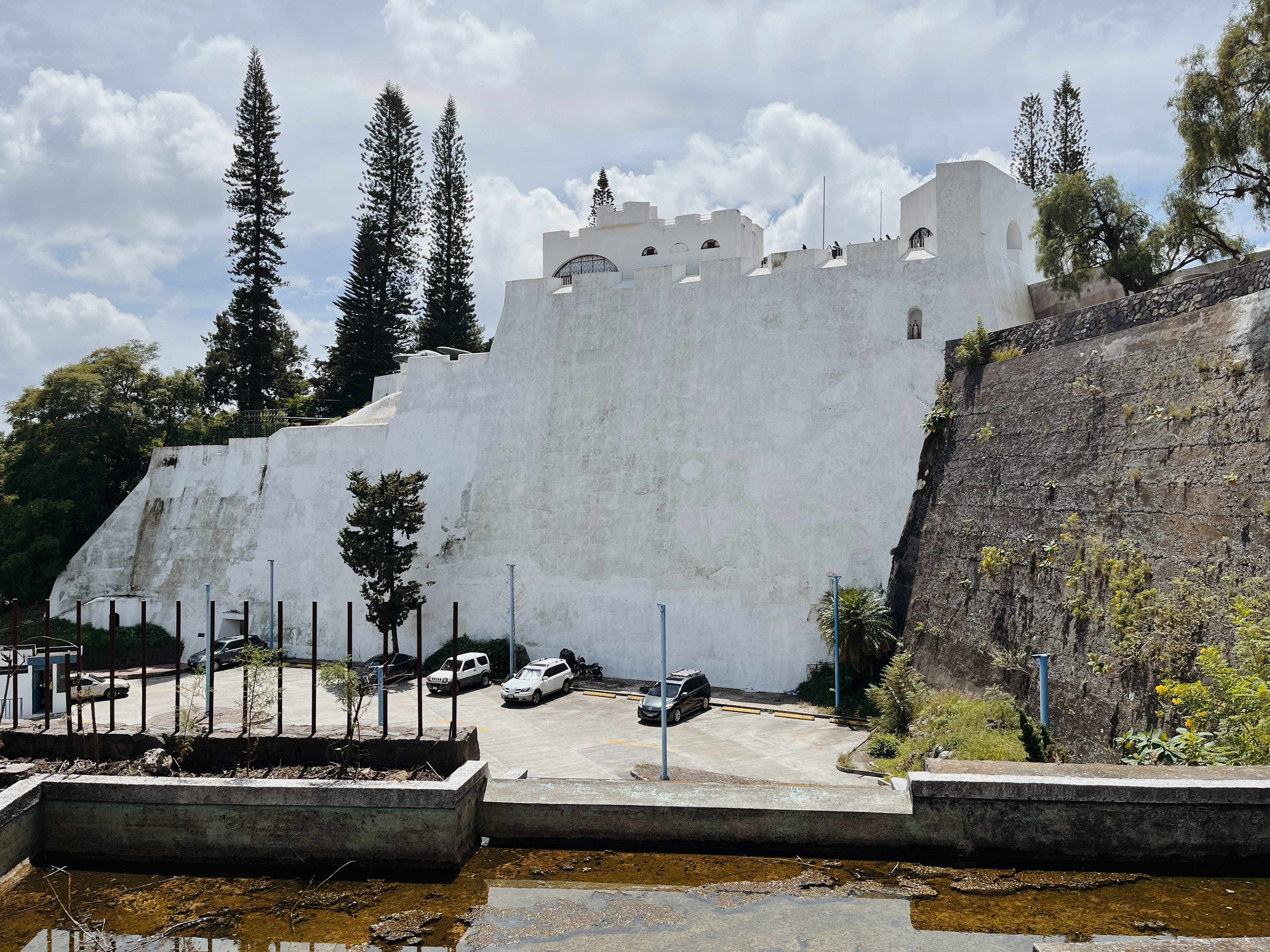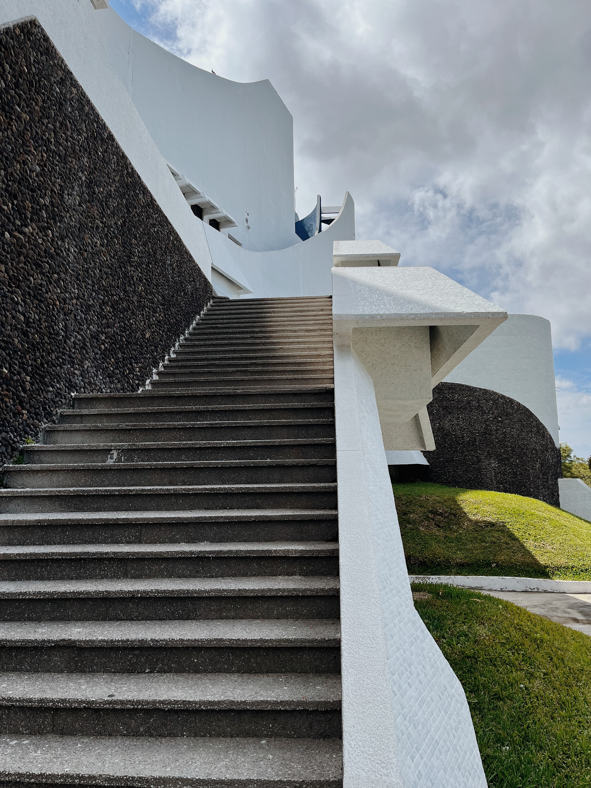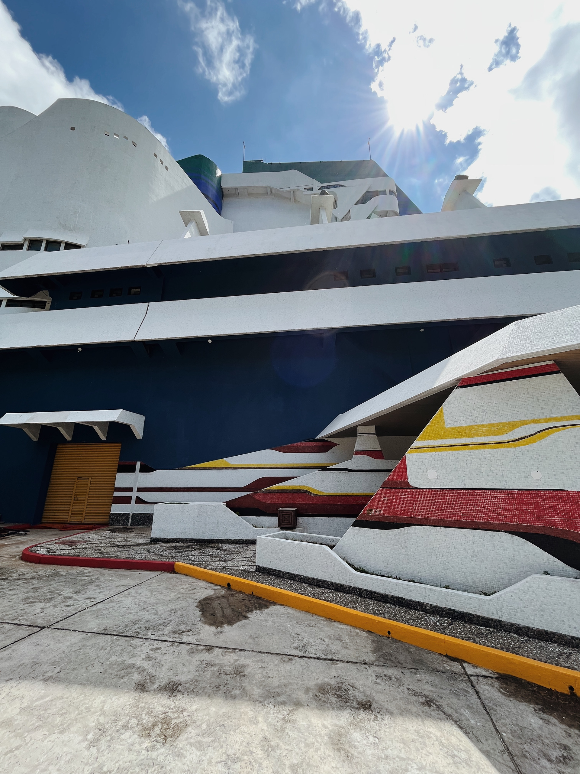 The mural-lined pathway connects with existing pedestrian overpasses to direct foot traffic to the building. The walkway punctures the building’s atrium and intersects with two galleries showcasing artifacts and curated exhibits of Guatemalan political history and artifacts.